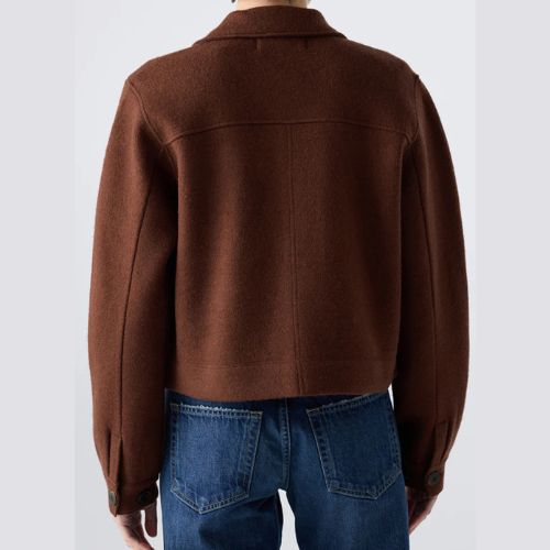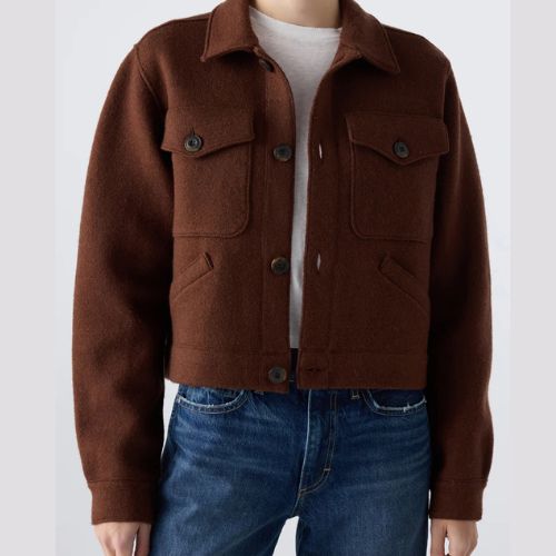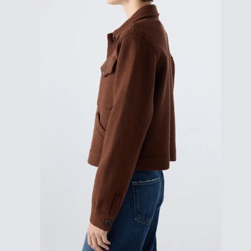 A classic cropped trucker style jacket with a slightly shrunken fit, shaped at the small of the back for a flattering silhouette. Crafted with denim seams that contour the body, it features chest flap pockets, shank