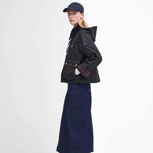Inspired by our most-loved, archive Spey Waxed Jacket, the Barbour Reighton Spey Waxed Jacket showcases all of the classic details such as the D-ring tab to the chest and a fixed hood. Complete with an oversized cord collar for a contemporary finish and tartan trims to the cuffs for a playful finish.