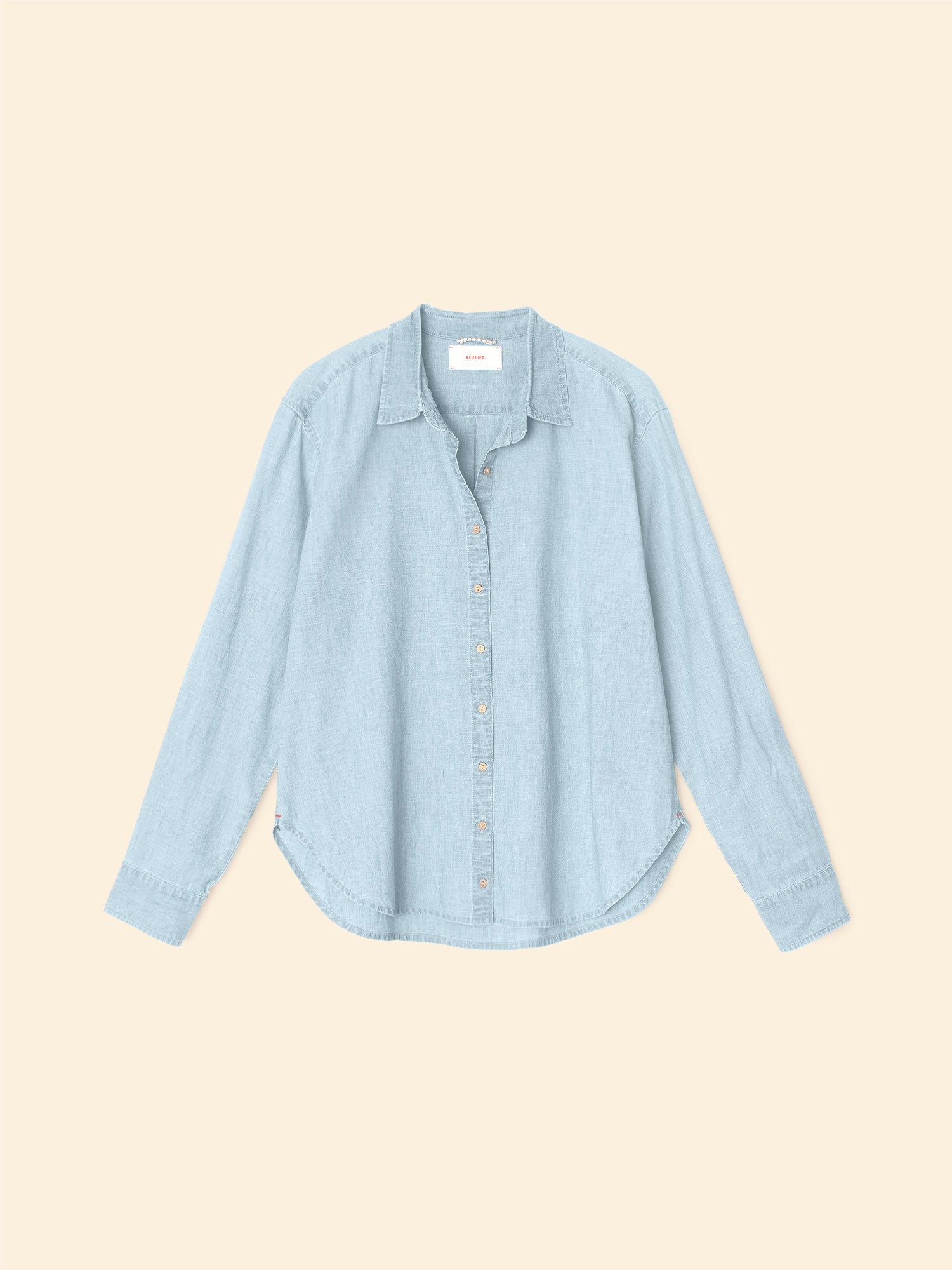 Vacation Mode. Beau is quintessential Xirena and an essential basic. Updated this season in our lightweight, soft-woven cotton chambray, the Beau Shirt has a menswear-inspired shape and is a must-have season after season.