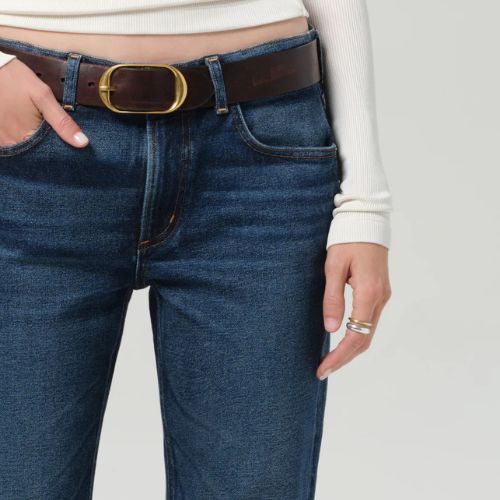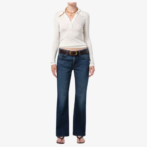 The Genova is a low-rise bootcut silhouette designed to elongate and flatter. Crafted from Japanese comfort stretch denim with a soft, broken-in hand, it offers structure with subtle flexibility. The Sutherland wash—a deep, dark indigo with soft fading and marbling—delivers a timeless, refined finish. The full-length leg pairs effortlessly with any kind of shoe—from boots to sneakers to heels.