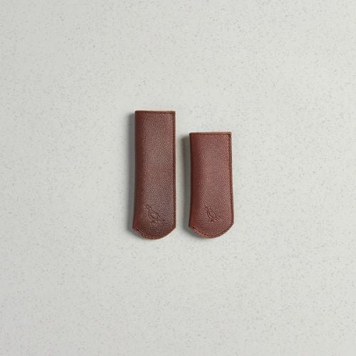Handcrafted and branded with the Smithey logo over high-grade oil-tanned leather, this skillet sleeve is one of our favorite tools. Available in two sizes, the standard-fit slides perfectly over the handle of our Traditional Cast Iron Skillets while the extended fit is designed to give more protection to the handles on our Chef Skillets and the No. 11 Deep Skillet. Like cast iron, these sleeves get better with time and use.