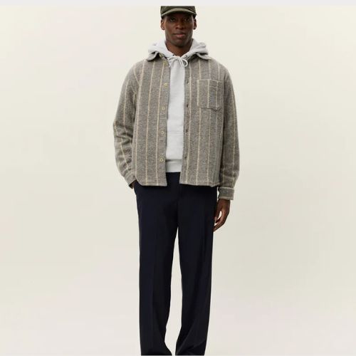 The Lennon Wool Pinstripe Overshirt is a relaxed, textured classic. It comes in a rich, shaggy wool blend designed for layering and is finished with a single chest pocket.