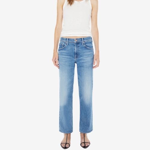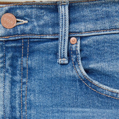 Smooth sailing. Mid-rise straight-leg jeans with a zip fly, ankle-length inseam and a clean hem. Made from stretch denim, Float My Boat is a light blue with whiskering and fading.