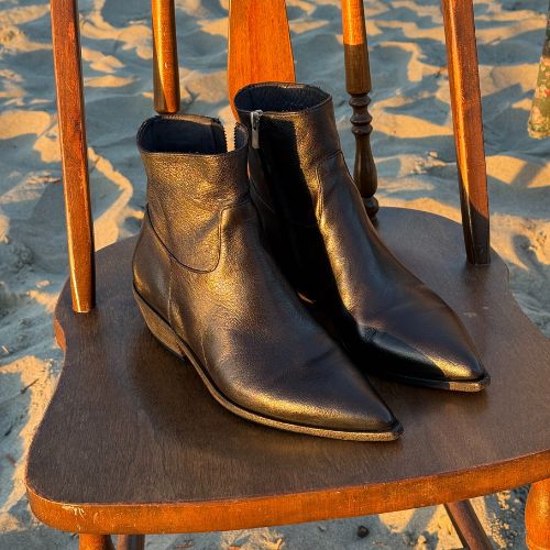 The Noelie black leather boots are expertly handcrafted in Italy, showcasing a refined, sophisticated silhouette enhanced by a rich deep-dyed finish. Designed for both style and durability, this sleek boot is set on a robust rubber-injected leather sole with a distinctive slanted heel that provides stability and lasting wear. Fully lined in supple leather with a leather insole for all-day comfort, the Noelie DD 102 offers a standard fit—simply take your normal size. Finished with a 40 mm heel and crafted from 100% premium leather, this timeless pair effortlessly balances elegance with everyday practicality.