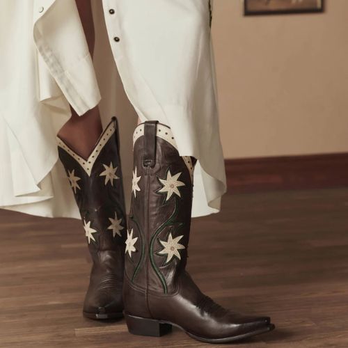 Made in collaboration with Stetson, whose legacy of authentic craftsmanship has defined the spirit of the West since 1865, this special edition boot combines time-tested craftsmanship with timeless western style. It features a supple leather vamp, 13” leather shaft with intricate floral embroidery, and a statement-making snip toe. An all-leather co-branded sole, crafted with lemonwood pegs and brass nails, and a hand-stacked leather heel provide a firm foundation, while premium cowhide leather lining and a cushioned leather insole ensure all-day comfort and support.